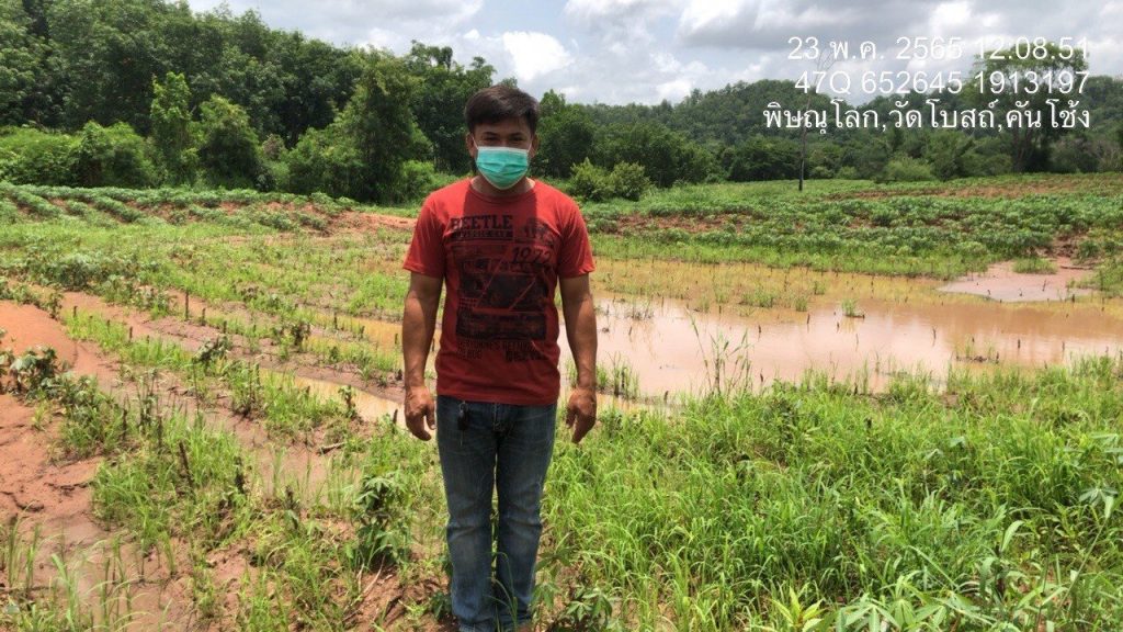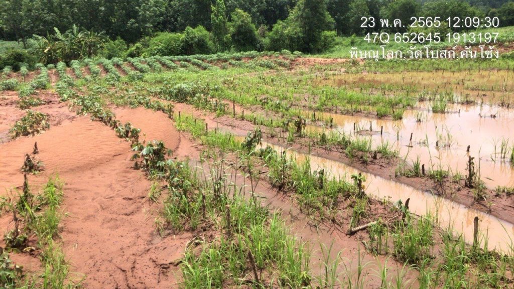 วันที่ 23 พฤษภาคม 2565 นางเกยูร จารุรัตนพงศ์ เกษตรอำเภอชาติตระการ มอบหมายให้ นางสาวณัฐรดา ใจเก่งดี และนางสาวจามจุรี เทพพิทักษ์ นักวิชาการส่งเสริมการเกษตรปฏิบัติการ สำนักงานเกษตรอำเภอชาติตระการ พร้อมด้วยผู้นำหมู่บ้าน ลงพื้นที่ตรวจสอบความเสียหายจากฝนตกหนัก ในแปลงเกษตรกรผู้ปลูกมันสำปะหลัง จำนวน 2 ราย ในพื้นที่หมู่ 13 บ้านตีนตก ตำบลบ้านดง อำเภอชาติตระการ จังหวัดพิษณุโลก