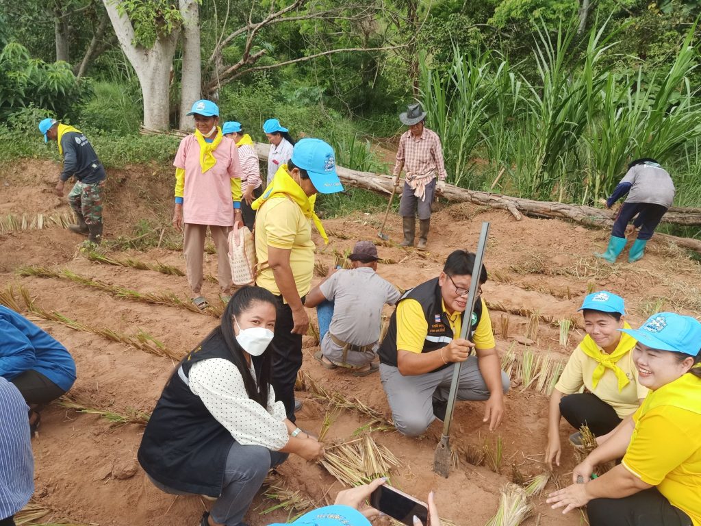 วันที่ 30 มิถุนายน 2565 นางสาวปานทิพย์ วงษ์แก้ว นักวิชาการส่งเสริมการเกษตรชำนาญการ รักษาราชการแทนเกษตรอำเภอนครไทย มอบหมายให้นางสาวยุพา สิทธิไกรพงษ์ นักวิชาการส่งเสริมการเกษตรปฏิบัติการ และนายสมประสงค์ อ้นสี นักวิชาการส่งเสริมการเกษตร เข้าร่วมโครงการปลูกหญ้าแฝกเฉลิมพระเกียรติ เพื่อให้ประชาชนทุกภาคส่วนได้มีส่วนร่วม ในการปลูกหญ้าแฝกเพื่ออนุรักษ์ดินและน้ำลดการชะล้างพังทะลายของหน้าดินริมตลิ่ง ณ ริมถนนการเกษตรสายห้วยเลาแล้ง บ้านใหม่ไทยเจริญ หมู่ที่ 13 ตำบลบ่อโพธิ์ อำเภอนครไทย จังหวัดพิษณุโลก