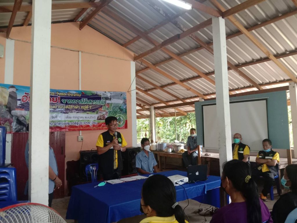 วันที่ 11 กรกฎาคม 2565 นางสาวปานทิพย์ วงษ์แก้ว นักวิชาการส่งเสริมการเกษตรชำนาญการ รักษาราชการแทนเกษตรอำเภอนครไทย มอบหมายให้นางสาวสุนีย์ นาคานุกูล นักวิชาการส่งเสริมการเกษตรชำนาญการ อบรมให้ความรู้เกษตรกรเกี่ยวกับการใช้สารเคมีทางการเกษตร ภายใต้โครงการเฝ้าระวังและป้องกัน อันตรายจากการใช้สารเคมี ในชุมชนบ้านบุ่งปลาฝา หมู่ที่ 7 ณ อาคารประชาตำบลยางโกลน อำเภอนครไทย จังหวัดพิษณุโลก