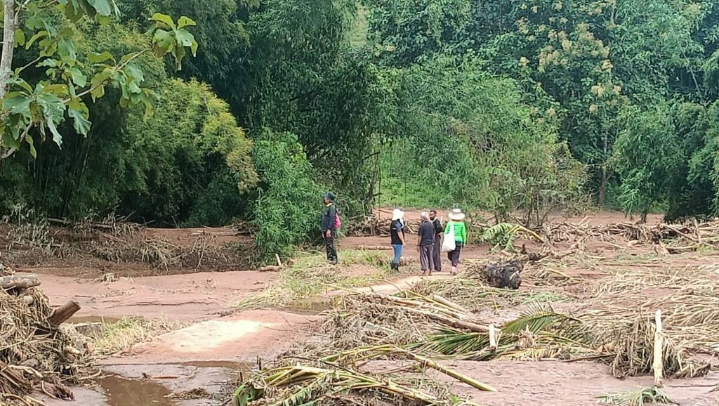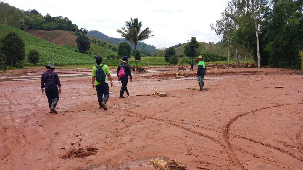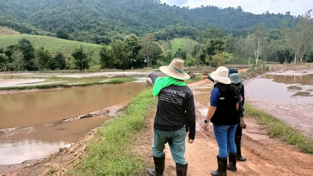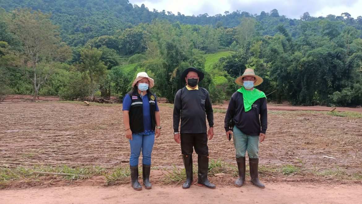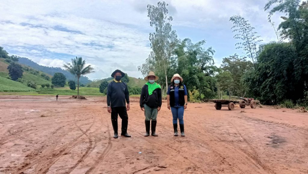วันที่ 24 สิงหาคม 2565 นางสาวปานทิพย์ วงษ์แก้ว นักวิชาการส่งเสริมการเกษตรชำนาญการ รักษาราชการแทนเกษตรอำเภอนครไทย มอบหมายให้นางสาวดอกไม้ คงหนองลาน นักวิชาการส่งเสริมการเกษตรชำนาญการ นางสาวยุพา สิทธิไกรพงษ์ นักวิชาการส่งเสริมการเกษตรปฏิบัติการ และนางสาวขนิษฐา ทองรุ่ง นักวิชาการส่งเสริมการเกษตร สำรวจและติดตามสถานการณ์พื้นที่ประสบอุทกภัย น้ำป่าไหลหลาก ดินโคลนถล่มในพื้นที่การเกษตรร่วมกับผู้นำชุมชน บ้านนาฟองแดง หมู่ที่ 7 ตำบลนครชุม อำเภอนครไทย จังหวัดพิษณุโลก เพื่อวางแผนในการลงตรวจสอบพื้นที่ความเสียหายและให้การช่วยเหลือเกษตรกรที่ได้รับผลกระทบ