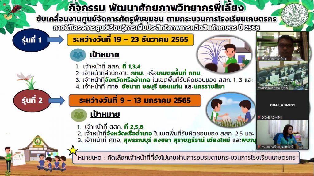 วันที่ 11 พฤศจิกายน 2565 นางปฏิญญา ทองสนิท นักวิชาการส่งเสริมการเกษตรชำนาญการ รักษาราชการแทนเกษตรอำเภอนครไทย มอบหมายให้นายสมาน ศรีทองอินทร์ นักวิชาการส่งเสริมการเกษตรชำนาญการ เข้าร่วมสัมมนาเจ้าหน้าที่ผู้รับผิดชอบศูนย์จัดการศัตรูพืชชุมชน ภายใต้โครงการศูนย์เรียนรู้การเพิ่มประสิทธิภาพการผลิตสินค้าเกษตร ปี 2566 ผ่านระบบ ApplicationZoomณ สำนักงานเกษตรอำเภอนครไทย อำเภอนครไทย จังหวัดพิษณุโลก