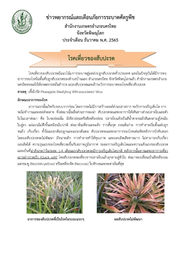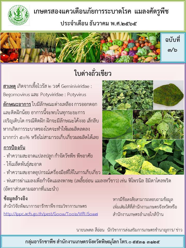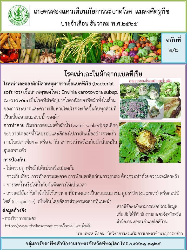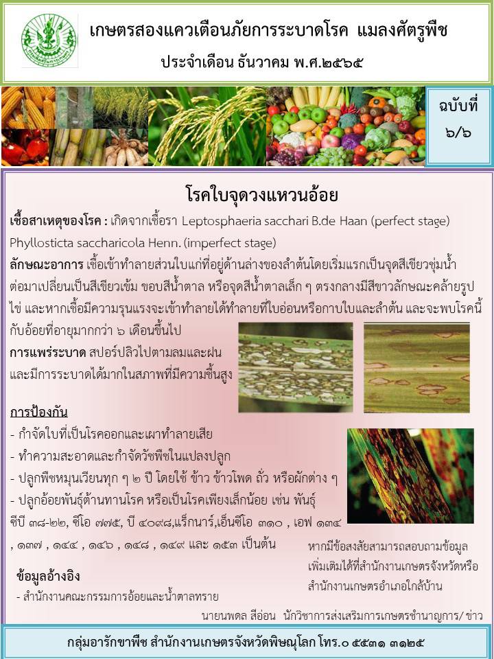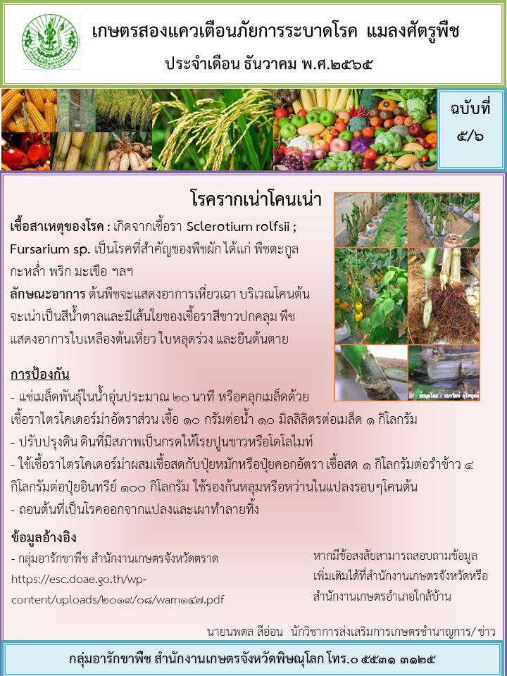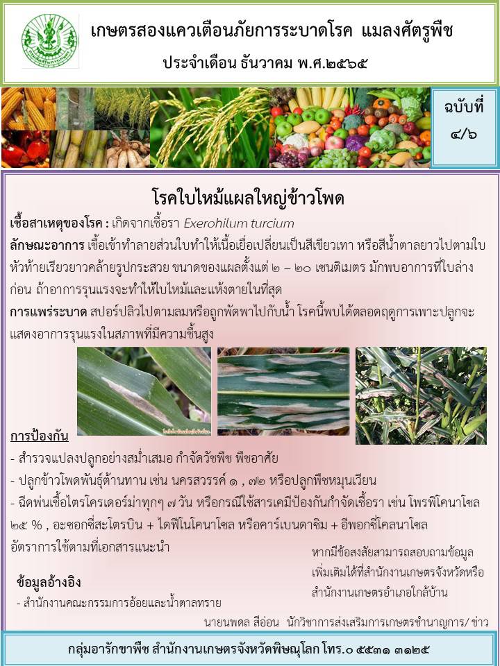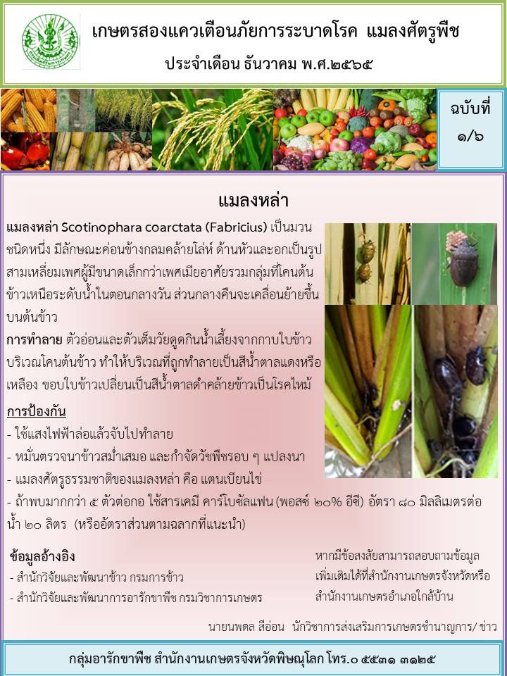 แจ้งเตือนภัยการระบาดศัตรูพืช ประจำเดือนพฤศจิกายน ที่คาดว่าจะพบการระบาดในเดือนธันวาคม ขอให้เกษตรกรในพื้นที่สำรวจ เฝ้าระวังพร้อมคำแนะนำการป้องกันกำจัดตามรายละเอียดนี้