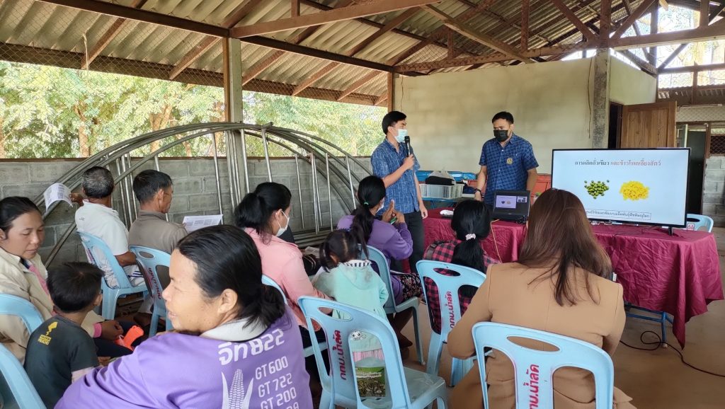 วันที่ 21 ธันวาคม 2565 นางปฏิญญา ทองสนิท เกษตรอำเภอนครไทย พร้อมด้วยนางสาวสุนีย์ นาคานุกูล นักวิชาการส่งเสริมการเกษตรชำนาญ และนางสาวขนิษฐา ทองรุ่ง นักวิชาการส่งเสริมการเกษตร ฝึกอบรมถ่ายทอดความรู้ให้เกษตรกร โครงการส่งเสริมการเพิ่มประสิทธิภาพการผลิตพืชตระกูลถั่วเพื่อความมั่นคงด้านอาหาร ปี 2566 โดยมีวิทยากรจากศูนย์วิจัยและพัฒนาเมล็ดพันธุ์พืชพิษณุโลกมาให้ความรู้ และประชาสัมพันธ์รณรงค์การหยุดเผาในพื้นที่การเกษตร ให้กับสมาชิกศูนย์ผลิตเมล็ดพันธุ์ถั่วเขียวชุมชน จำนวน 20 ราย ณ อาคารเอนกประสงค์ หมู่ที่ 6 ตำบลบ้านพร้าว อำเภอนครไทย จังหวัดพิษณุโลก