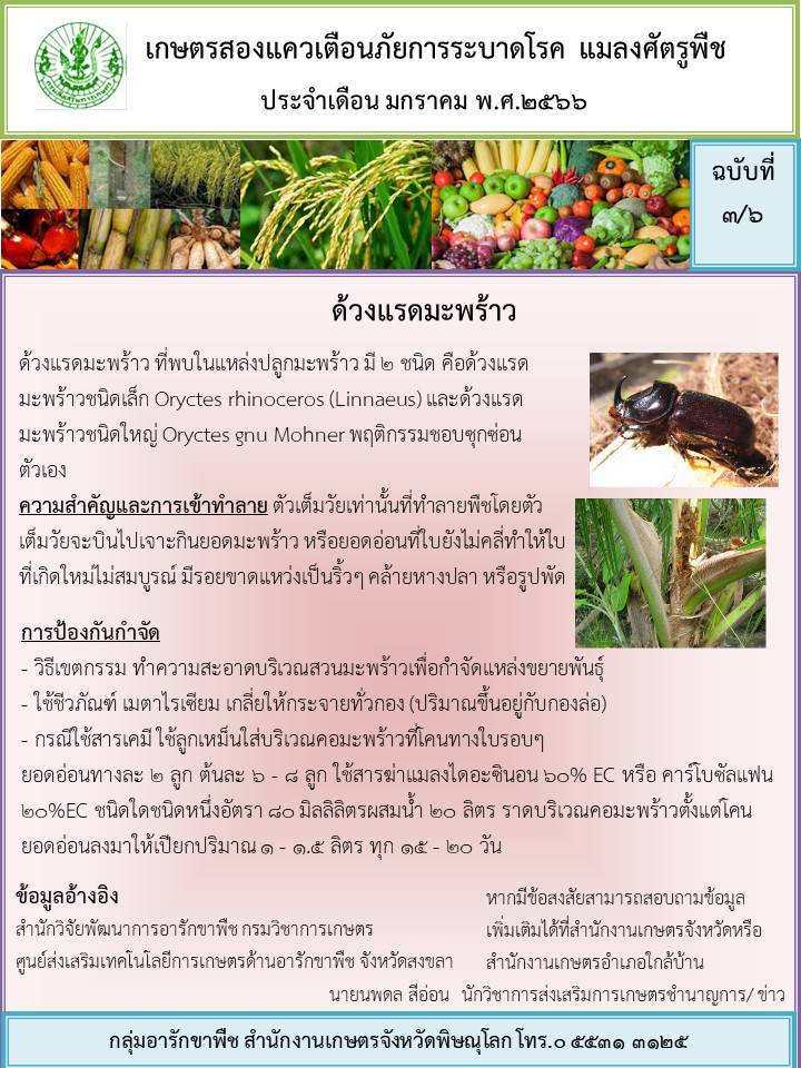 แจ้งเตือนภัยการระบาดศัตรูพืช ประจำเดือนธันวาคม ที่คาดว่าจะพบการระบาดในเดือนมกราคม ขอให้เกษตรกรในพื้นที่สำรวจ เฝ้าระวังพร้อมคำแนะนำการป้องกันกำจัดตามรายละเอียดนี้