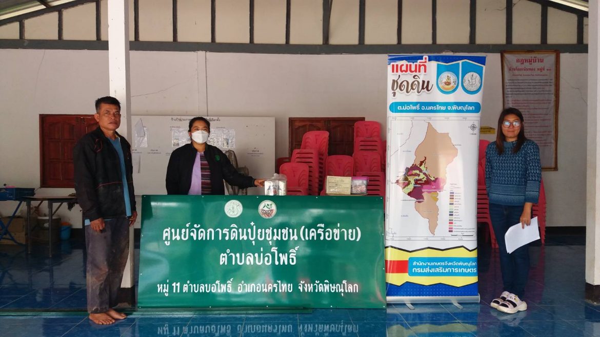 วันที่ 3 กุมภาพันธ์ 2566 นางปฏิญญา ทองสนิท เกษตรอำเภอนครไทย มอบหมายให้นางสาวดอกไม้ คงหนองลาน นักวิชาการส่งเสริมการเกษตรชำนาญการและนางสาวยุพา สิทธิไกรพงษ์ นักวิชาการส่งเสริมการเกษตรปฏิบัติการ พร้อมด้วยนางวิรุฬวัลย์ อิ่มอ่อง นักวิชาการส่งเสริมการเกษตร มอบวัสดุอุปกรณ์โครงการศูนย์เรียนรู้การเพิ่มประสิทธิภาพการผลิตสินค้าเกษตร (ศพก.) กิจกรรมศูนย์จัดการดินปุ๋ยขุมชน (ศดปช.) เครือข่าย ณ ศูนย์จัดการดินปุ๋ยขุมชนเครือข่ายบ้านโคกเนินทอง หมู่ที่ 11 ตำบลบ่อโพธิ์ อำเภอนครไทย จังหวัดพิษณุโลก
