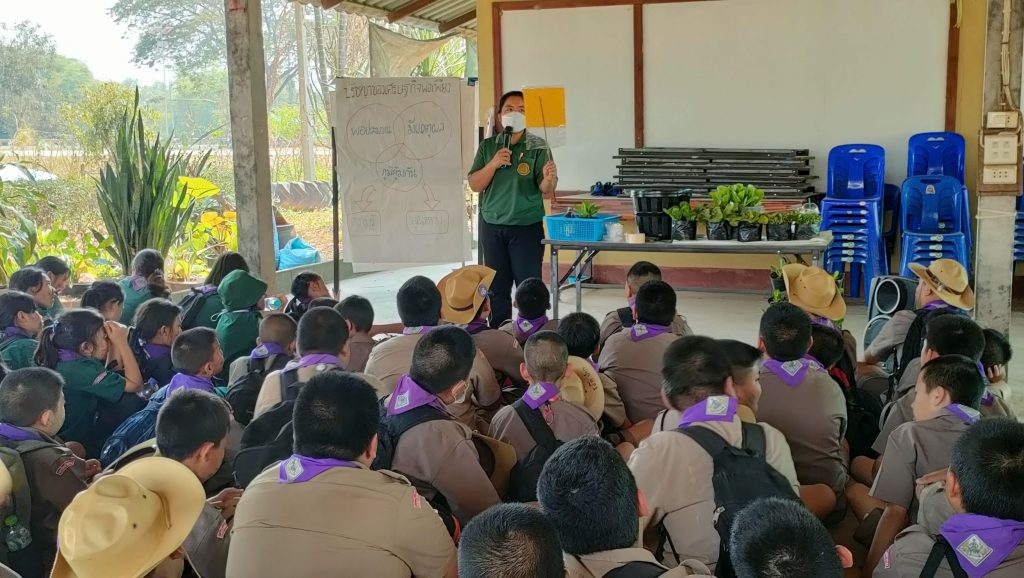 วันที่ 23 กุมภาพันธ์ 2566 นางปฏิญญา ทองสนิท เกษตรอำเภอนครไทย มอบหมายให้นางสาวดอกไม้ คงหนองลาน นักวิชาการส่งเสริมการเกษตรชำนาญการ ร่วมเป็นวิทยากร การจัดกิจกรรมการเดินทางไกลลูกเสือสามัญ ระดับชั้นประถมศึกษาปีที่ 4 กิจกรรมเสริมหลักสูตรศึกษาแหล่งเรียนรู้ในท้องถิ่น เรื่องเศรษฐกิจพอเพียง การเพาะปลูกพืชผักสวนครัว และการจัดการดูแลโรคและแมลง โดยวิธีผสมผสาน (ฐานเรียนรู้ด้านการเกษตร) สำนักงานเกษตรอำเภอนครไทย หมู่ที่ 7 ตำบลนครไทย อำเภอนครไทย จังหวัดพิษณุโลก