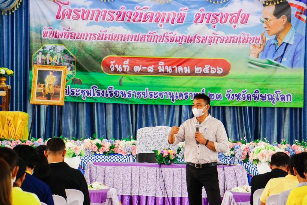 วันที่ 7 มีนาคม 2566 นางปฏิญญา ทองสนิท เกษตรอำเภอนครไทย พร้อมด้วยนายสมาน ศรีทองอินทร์ นักวิชาการส่งเสริมการเกษตรชำนาญการ นายสุรศักดิ์ ทองม่วง และนายวิรัตน์ คงปันนา นักวิชาการส่งเสริมการเกษตรปฏิบัติการ ร่วมเป็นวิทยากร หัวข้อ ปรัชญาของเศรษฐกิจพอเพียงและทฤษฎีใหม่ สู่เป้าหมายการพัฒนาที่ยั่งยืน ตามโครงการบำบัดทุกข์ บำรุงสุข ขับเคลื่อนการพัฒนาตามหลักปรัชญาของเศรษฐกิจพอเพียง เพื่อเพิ่มศักยภาพของกลไกหลักในระดับพื้นที่ สร้างทีมขับเคลื่อนระดับตำบล หมู่บ้าน ผู้นำนักขับเคลื่อนยุทธศาสตร์เพื่อสร้างผู้นำขับเคลื่อน ร่วมคิด ร่วมทำ หอประชุมโรงเรียนราชประชานุเคราะห์ 23 ตำบลเนินเพิ่ม อำเภอนครไทย จังหวัดพิษณุโลก