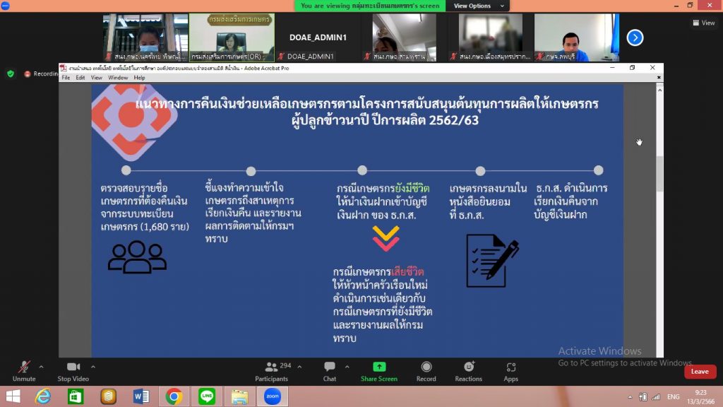 วันที่ 13 มีนาคม 2566 นางปฏิญญา ทองสนิท เกษตรอำเภอนครไทย พร้อมด้วยนางสาวยุพา สิทธิไกรพงษ์ นักวิชาการส่งเสริมการเกษตรปฏิบัติการ ร่วมกิจกรรมแลกเปลี่ยนเรียนรู้ CLINIC IT ครั้งที่ 2 ในหัวข้อเรื่อง การติดตามการคืนเงิน สตง. และการวาดผังแปลงกิจกรรม (Geoplot) ผ่านระบบ Zoom ณ สำนักงานเกษตรอำเภอนครไทย หมู่ที่ 7 ตำบลนครไทย อำเภอนครไทย จังหวัดพิษณุโลก