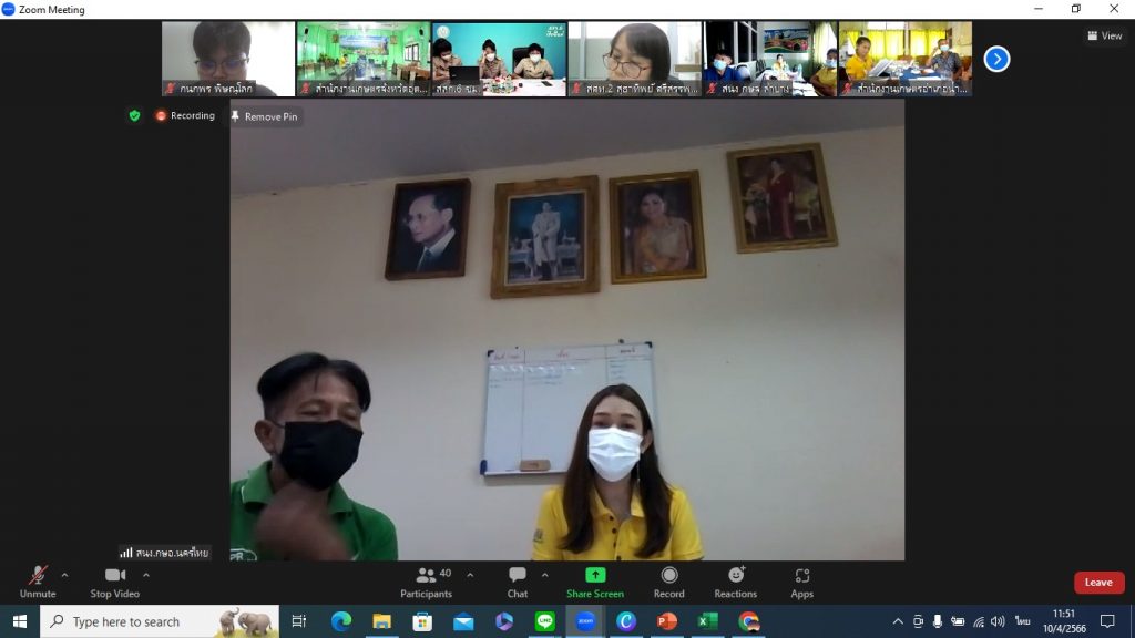 วันที่ 10 เมษายน 2566 นางปฏิญญา ทองสนิท เกษตรอำเภอนครไทย พร้อมด้วย นางสาวดอกไม้ คงหนองลาน นักวิชาการส่งเสริมการเกษตรชำนาญการ และนายสมทรง อู่ทอง ประธานกลุ่มคลัสเตอร์สับปะรด ร่วมประชุมบริหารจัดการการผลิตและการตลาดสินค้าสับปะรดระดับเขต ครั้งที่ 2/2566 ผ่านโปรแกรม Zoom Meeting เพื่อติดตามข้อมูลสถานการณ์การผลิตและประมาณการผลผลิตสับปะรดภาคเหนือประจำปี 2566 และวางแผนบริหารจัดการสับปะรดระดับเขต ณ ห้องประชุมสำนักงานเกษตรอำเภอนครไทย ตำบลนครไทย อำเภอนครไทย จังหวัดพิษณุโลก