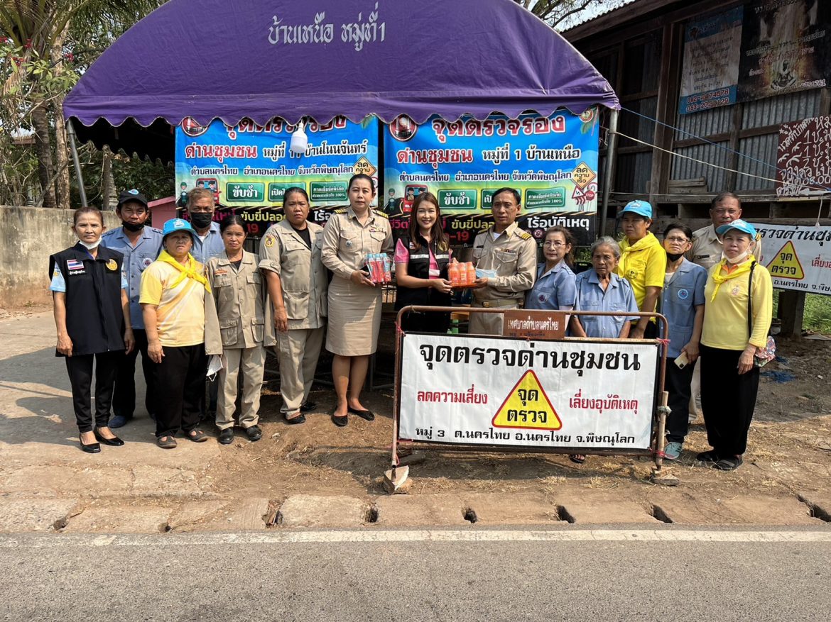 วันที่ 11 เมษายน 2566 นางปฏิญญา ทองสนิท เกษตรอำเภอนครไทย ติดตามตรวจเยี่ยมจุดตรวจรองด่านชุมชนในช่วงเทศกาลวันสงกรานต์ พ.ศ.2566 เพื่อติดตามผลการดำเนินงาน พร้อมทั้งมอบน้ำดื่ม และสร้างขวัญกำลังใจให้แก่เจ้าหน้าที่ผู้ปฏิบัติหน้าที่ประจำด่านชุมชน จำนวน 3 ด่าน ได้แก่ ด่านชุมชนหมู่ที่ 1 หมู่ที่ 2 หมู่ที่ 3 หมู่ที่ 4 หมู่ที่ 9 หมู่ที่ 11 และหมู่ที่ 13 ตำบลนครไทย อำเภอนครไทย จังหวัดพิษณุโลก