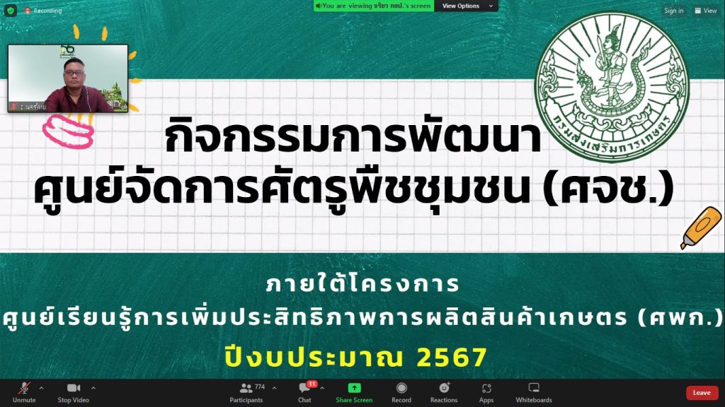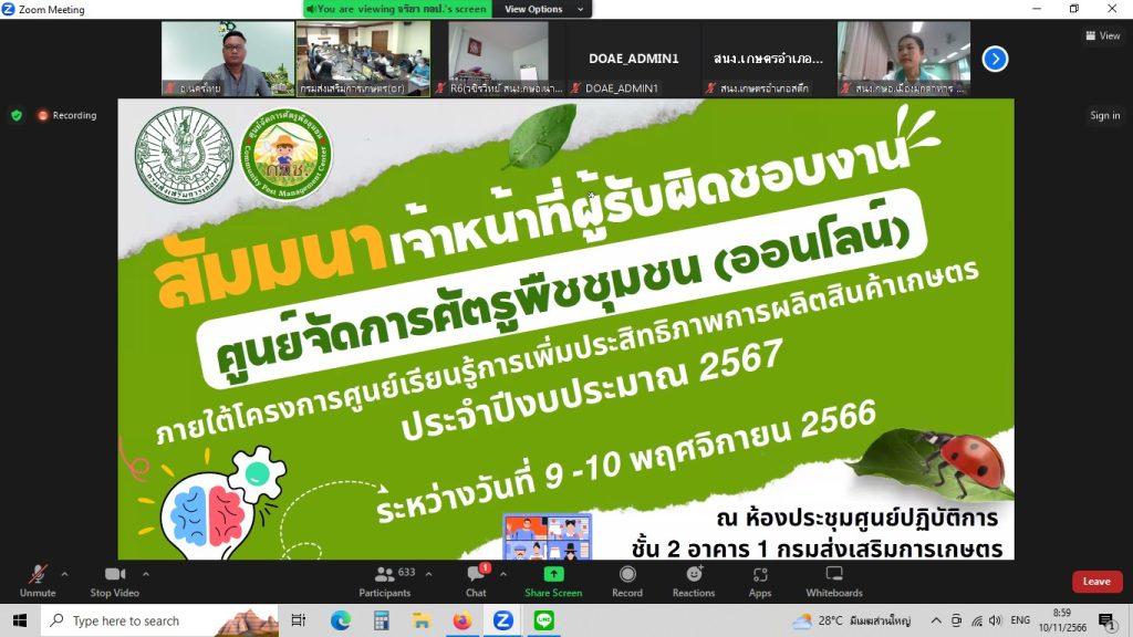 วันที่ 10 พฤศจิกายน 2566 นางปฏิญญา ทองสนิท เกษตรอำเภอนครไทย มอบหมายให้นายสมาน ศรีทองอินทร์ นักวิชาการส่งเสริมการเกษตรชำนาญการพิเศษ ร่วมสัมมนาเจ้าหน้าที่ผู้รับผิดชอบงานศูนย์จัดการศัตรูพืชชุมชน (ออนไลน์) ภายใต้โครงการศูนย์เรียนรู้การเพิ่มประสิทธิภาพการผลิตสินค้าเกษตร ปีงบประมาณ 2567 ระหว่างวันที่ 9-10 พฤศจิกายน 2566 เพื่อรับฟังข้อชี้แจงแนวทางขับเคลื่อนงานอารักขาพืช ปีงบประมาณ พ.ศ.2567 พร้อมแลกเปลี่ยนความคิดเห็นและวางแผนแนวทางการดำเนินงานร่วมกันในระดับพื้นที่ ผ่านระบบออนไลน์ Zoom Meeting จัดโดยกองส่งเสริมการอารักขาพืชและจัดการดินปุ๋ยชุมชน ณ สำนักงานเกษตรอำเภอนครไทย จังหวัดพิษณุโลก