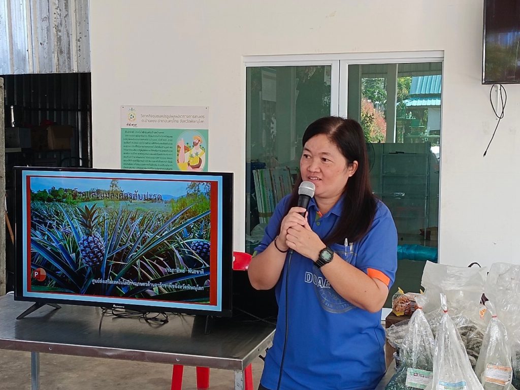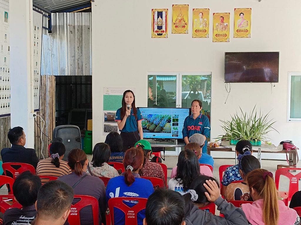 วันที่ 28 พฤศจิกายน 2566 นางปฏิญญา ทองสนิท เกษตรอำเภอนครไทย พร้อมด้วยนางสาวดอกไม้ คงหนองลาน นักวิชาการส่งเสริมการเกษตรชำนาญการ และนายสุรศักดิ์ ทองม่วง นักวิชาการส่งเสริมการเกษตรปฏิบัติการ ร่วมกับเจ้าหน้าที่กลุ่มส่งเสริมและพัฒนาการผลิต สำนักงานเกษตรจังหวัดพิษณุโลก ร่วมกิจกรรมถ่ายทอดความรู้ให้แก่เกษตรกร เรื่องการผลิตสับปะรดคุณภาพดี เพื่อเตรียมผลักดันสู่การสร้างให้เป็นสินค้าอัตลักษณ์ ตามโครงการเพิ่มประสิทธิภาพการผลิตสับปะรด ประจำปีงบประมาณ พ.ศ.2567 เกษตรกร จำนวน 50 ราย ณ อาคารเอนกประสงค์ หมู่ที่ 3 ตำบลบ้านแยง อำเภอนครไทย จังหวัดพิษณุโลก