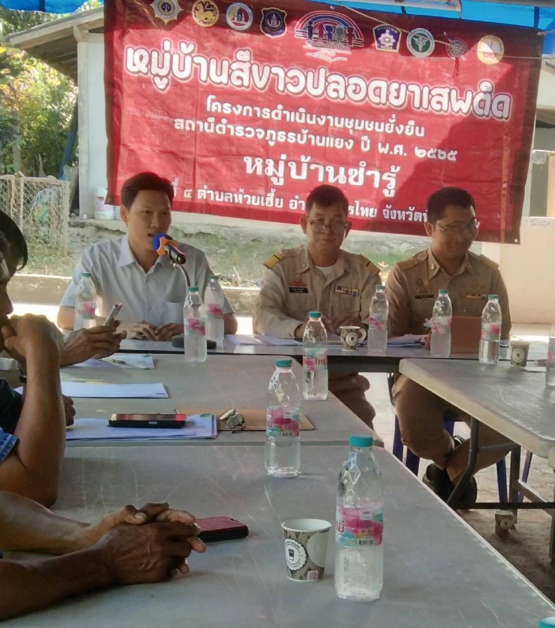 วันที่ 6 ธันวาคม 2566 นางปฏิญญา ทองสนิท เกษตรอำเภอนครไทย มอบหมายให้นายสุรศักดิ์ ทองม่วง นักวิชาการส่งเสริมการเกษตรปฏิบัติการ ร่วมประชุมกำนัน ผู้ใหญ่บ้าน แพทย์ประจำตำบล สารวัตรฯ ผู้ช่วยผู้ใหญ่บ้าน ผรส. สัญจร ตำบลห้วยเฮี้ย เพื่อชี้แจงข่าวสารด้านการเกษตร และประชาสัมพันธ์สร้างการรับรู้การหยุดเผาในพื้นที่การเกษตร พร้อมเเนะนำวิธีการจัดการวัสดุเหลือใช้ทางการเกษตร และสำรวจข้อมูลการอัดฟางในพื้นที่ ณ บ้านซ้ำรู้ หมู่ที่ 4 ตำบลห้วยเฮี้ย อำเภอนครไทย จังหวัดพิษณุโลก
