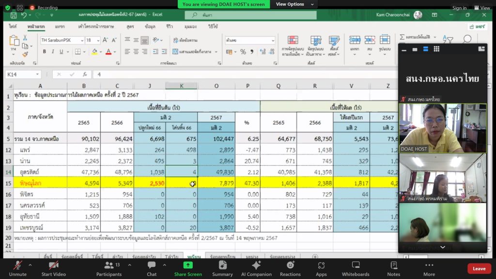 นางสาวปานทิพย์ วงษ์แก้ว เกษตรอำเภอนครไทย มอบหมายให้นางสาวสุนีย์ นาคานุกูล และนางสาวดอกไม้ คงหนองลาน นักวิชาการส่งเสริมการเกษตรชำนาญการ ร่วมประชุมการจัดทำข้อมูลเนื้อที่ปลูกพืชรายหมู่บ้าน ตำบล อำเภอ ของจังหวัดพิษณุโลก เพื่อนำข้อมูลมาปรับปรุงกรอบข้อมูลพื้นที่ระดับตำบล และระดับอำเภอ รวมทั้งนำมาใช้ประกอบการวิเคราะห์สถานการณ์การผลิตพืชในจังหวัดพิษณุโลก ให้ถูกต้อง ครบถ้วน และเป็นปัจจุบัน ผ่านระบบ Zoom Meeting ณ สำนักงานเกษตรอำเภอนครไทย จังหวัดพิษณุโลก