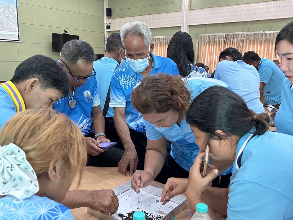 นางสาวปานทิพย์ วงษ์แก้ว เกษตรอำเภอนครไทย มอบหมายให้นางสาวสุภาภรณ์ คลังตอง นักวิชาการส่งเสริมการเกษตรปฏิบัติการ ร่วมกับเกษตรกร (หมอพืชชุมชน) จำนวน 4 ราย ร่วมประชุมโครงการศูนย์เรียนรู้การเพิ่มประสิทธิภาพการผลิตสินค้าเกษตร กิจกรรมพัฒนาศักยภาพการให้บริการคลินิกพืชสนับสนุนการดำเนินงานศูนย์เครือข่าย กิจกรรมย่อย พัฒนาเกษตรกรให้เป็นหมอพืชชุมชน ครั้งที่ 4 โดยมีเนื้อหารายวิชา ดังนี้ 1. การสำรวจและเก็บข้อมูลเพื่อการวินิจฉัยศัตรูข้าว 2. ฝึกปฏิบัติวินิจฉัยศัตรูพืชภาคสนาม (แปลงข้าว) และ 3. รู้จักคลินิกพืชและเครือข่ายการดำเนินงาน จัดโดยกลุ่มอารักขาพืชจังหวัดพิษณุโลก ณ ศูนย์วิจัยข้าว พิษณุโลก อำเภอวังทอง จังหวัดพิษณุโลก