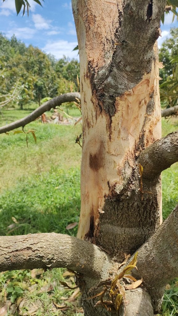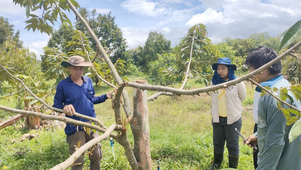 นางสาวปานทิพย์ วงษ์แก้ว เกษตรอำเภอนครไทย มอบหมายให้นางสาวนางสาวขนิษฐา ทองรุ่ง นักวิชการส่งเสริมการเกษตร พร้อมเจ้าหน้าที่สำนักงานเกษตรอำเภอนครไทย ลงพื้นที่ติดตามสำรวจแปลงทุเรียนของเกษตรกรพบการระบาดของโรคไฟท็อปเทอร่าในแปลง เบื้องต้นจึงให้คำแนะนำการใช้สารเคมีป้องกันกำจัด และแนะนำวิธีการป้องกันกำจัดโรคโดยวิธีผสมผสาน ณ หมู่ที่ 7 ตำบลห้วยเฮี้ย อำเภอนครไทย จังหวัดพิษณุโลก