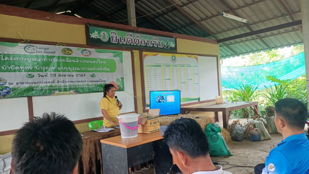 นางสาวปานทิพย์ วงษ์แก้ว เกษตรอำเภอนครไทย มอบหมายให้นางสาวดอกไม้ คงหนองลาน นักวิชาการส่งเสริมการเกษตรชำนาญการ และนางสาวยุพา สิทธิไกรพงษ์ นักวิชาการส่งเสริมการเกษตรปฏิบัติการ ร่วมเป็นวิทยากรอบรมโครงการขับเคลื่อนอำเภอนครไทย บำบัดทุกข์ บำรุงสุข แบบบูรณาการอย่างยั่งยืน โดยบรรยายในหัวข้อเรื่องการผลิตน้ำหมักชีวภาพกำจัดแมลงศัตรูพืช และการเพาะเห็ดฟางในตะกร้า พร้อมการฝึกปฏิบัติ โดยมีผู้เข้าร่วมจำนวน 60 ราย จัดโดยที่ว่าการอำเภอนครไทย ณ ห้องประชุมสำนักงานเกษตรอำเภอนครไทย ตำบลนครไทย อำเภอนครไทย จังหวัดพิษณุโลก