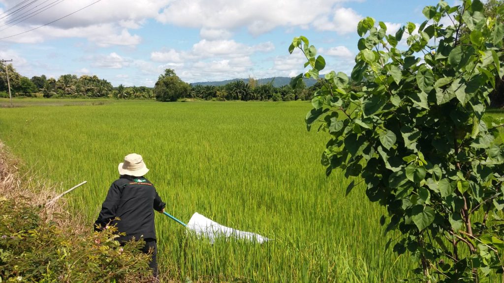 นางสาวปานทิพย์ วงษ์แก้ว เกษตรอำเภอนครไทย มอบหมายให้นางสาวดอกไม้ คงหนองลาน นักวิชาการส่งเสริมการเกษตรชำนาญการ และนางสาวยุพา สิทธิไกรพงษ์ นักวิชาการส่งเสริมการเกษตรปฏิบัติการ ร่วมกับเจ้าหน้าที่ศูนย์ส่งเสริมเทคโนโลยีการเกษตรด้านอารักขาพืช จังหวัดพิษณุโลก และผู้นำชุมชนตำบลหนองกะท้าว ลงพื้นที่เพื่อติดตามสถานการณ์โรคและแมลงศัตรูพืช ในแปลงนาข้าวและแปลงมันสำปะหลัง ในพื้นที่ตำบลหนองกะท้าว พร้อมให้คำแนะนำการดูแล และการจัดการโรคและแมลงศัตรูพืช โดยวิธีผสมผสาน ณ หมู่ที่ 5 หมู่ที่ 13 และหมู่ที่ 6 ตำบลหนองกะท้าว อำเภอนครไทย จังหวัดพิษณุโลก