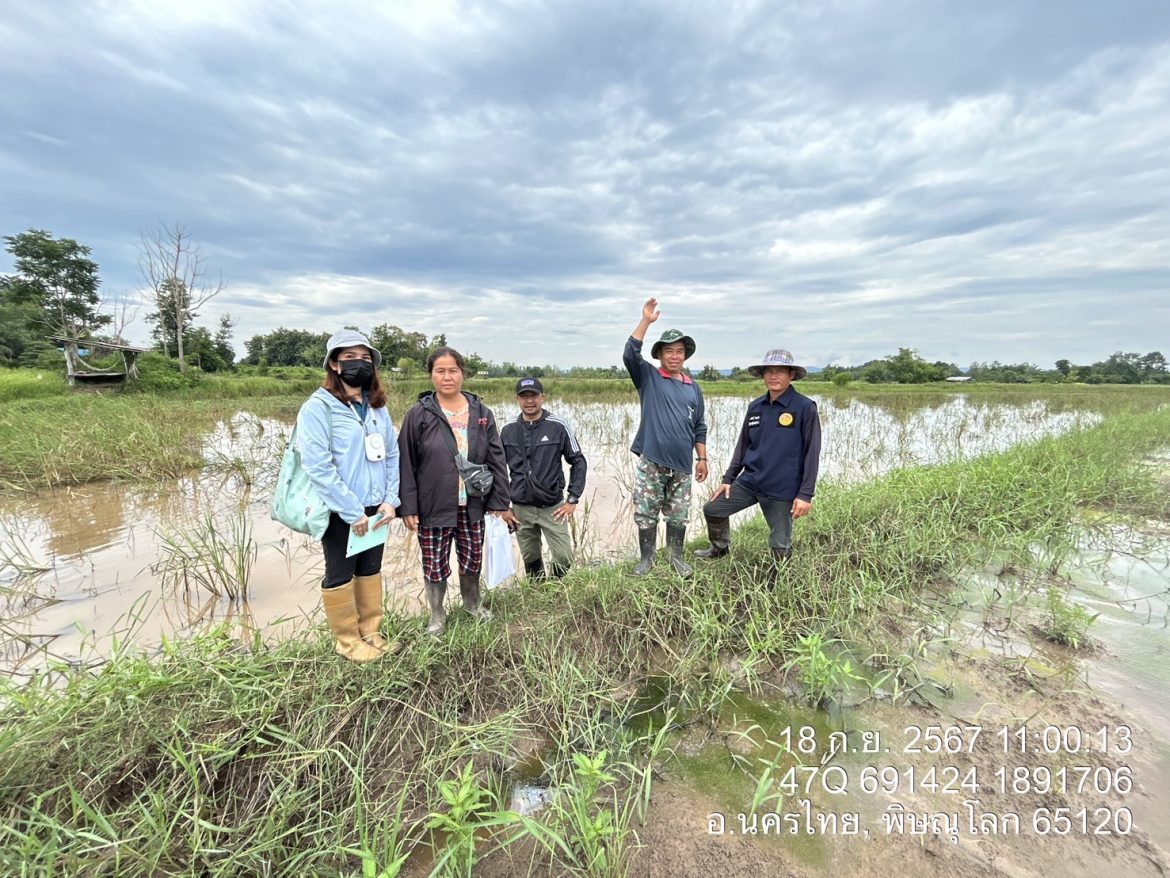 นางสาวปานทิพย์ วงษ์แก้ว เกษตรอำเภอนครไทย มอบหมายให้นางสาวสุนีย์ นาคานุกูล นักวิชาการส่งเสริมการเกษตรชำนาญการ นายวิรัตน์ คงปันนา และนางสาวสุภาภรณ์ คลังตอง นักวิชาการส่งเสริมการเกษตรปฏิบัติการ พร้อมด้วยคณะอนุกรรมการตรวจสอบความเสียหายจากภัยพิบัติกรณีฉุกเฉิน (ด้านพืช) ระดับตำบล ลงตรวจสอบพื้นที่การเกษตรที่ได้รับความเสียหายจากอุทกภัย พื้นที่ปลูกข้าว และข้าวโพดเลี้ยงสัตว์ เกษตรกรจำนวน 61 ราย ณ หมู่ที่ 1 และหมู่ที่ 9 ตำบลบ้านพร้าว อำเภอนครไทย จังหวัดพิษณุโลก