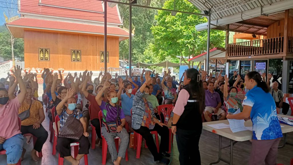 นางสาวปานทิพย์ วงษ์แก้ว เกษตรอำเภอนครไทย มอบหมายให้นางสาวยุพา สิทธิไกรพงษ์ นักวิชาการส่งเสริมการเกษตรปฏิบัติการ และนางสาวดอกไม้ คงหนองลาน นักวิชาการส่งเสริมการเกษตรชำนาญการ ร่วมกับคณะทำงานตรวจสอบการขึ้นทะเบียนเกษตรกรระดับหมู่บ้าน จัดเวทีประชาคมรับรองข้อมูลการขึ้นทะเบียนผู้ปลูกพืช ปีการผลิต 2567 หมู่ที่ 1 ,2 ,3 ,4 ,5 ,6 พร้อมชี้แจงและประชาสัมพันธ์ข่าวสารด้านการเกษตร ดังนี้ 1.การขึ้นทะเบียนและปรับปรุงทะเบียนเกษตรกร รายละเอียดหลักเกณฑ์ และเงื่อนไขต่าง ๆ ปี 2567 2.ชี้แจงหลักเกณฑ์เงื่อนไขการช่วยเหลือเกษตรกรผู้ประสบภัยพิบัติ 3.ประชาสัมพันธ์โรคใบต่างมันสำปะหลัง และข่าวสารด้านการเกษตร โดยมีเกษตรกรเป้าหมายในการตรวจสอบข้อมูล จำนวน 267 ราย ณ ตำบลน้ำกุ่ม อำเภอนครไทย จังหวัดพิษณุโลก