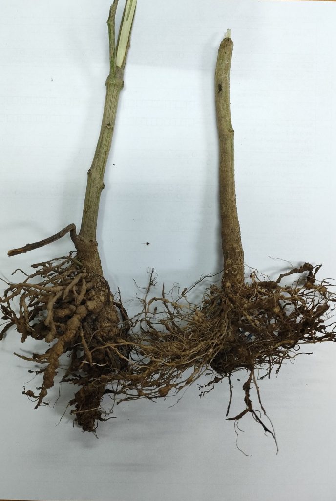 นางสาวปานทิพย์ วงษ์แก้ว เกษตรอำเภอนครไทย มอบหมายให้นางสาวสุนีย์ นาคานุกูล นักวิชาการส่งเสริมการเกษตรชำนาญการ และนางสาวขนิษฐา ทองรุ่ง นักวิชาการส่งเสริมการเกษตร ลงพื้นที่ติดตามแปลงเกษตรกรผู้ปลูกพริกชี้ฟ้า พบว่าพริกมีอาการเหี่ยวเฉา และรากมีอาการเป็นปม สาเหตุเกิดจาก ไส้เดือนฝอยเข้าทำลายระบบราก ทำให้ระบบรากเสียหายไม่ยืดยาว กลายเป็นปมกุด เบื้องต้นจึงแนะนำเมื่อพบการระบาด ถอนต้นที่เป็นโรคออกมาเผาทำลาย ไถตากดิน ควรปลูกดาวเรืองสลับกับการปลูกพริก พร้อมแนะนำการใช้สารเคมีและการจัดการโดยวิธีผสมผสาน ณ หมู่ที่ 19 ตำบลเนินเพิ่ม อำเภอนครไทย จังหวัดพิษณุโลก