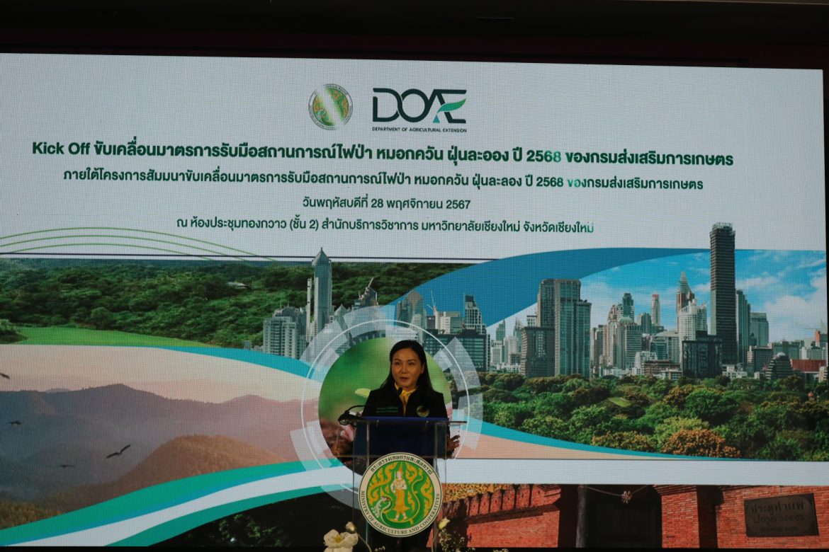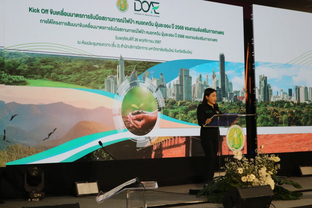 นางสาวปานทิพย์ วงษ์แก้ว เกษตรอำเภอนครไทย ร่วมงาน Kick off ขับเคลื่อนมาตรการรับมือสถานการณ์ไฟป่า หมอกควัน ฝุ่นละออง ปี 2568 ของกรมส่งเสริมการเกษตร เพื่อรับฟังแนวทางการขับเคลื่อนมาตรการรับมือ การสร้างการรับรู้ ความเข้าใจ ให้แก่เกษตรจังหวัด และเกษตรอำเภอ 17 จังหวัดภาคเหนือ ณ ห้องประชุมทองกวาว สำนักบริการวิชาการ มหาวิทยาลัยเชียงใหม่ จังหวัดเชียงใหม่ และมอบหมายให้เจ้าหน้าที่ผู้รับชอบรับฟัง ผ่านระบบ Facebook live ถ่ายทอดสดจากห้องประชุมทองกวาว (ชั้น2) สำนักบริการวิชาการ มหาวิทยาลัยเชียงใหม่ ณ สำนักงานเกษตรอำเภอนครไทย จังหวัดพิษณุโลก