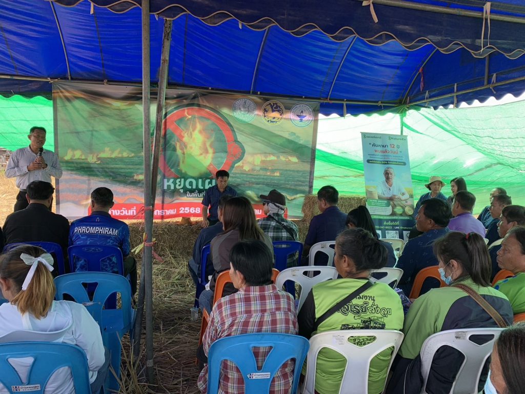 นางสาวปานทิพย์ วงษ์แก้ว เกษตรอำเภอนครไทย ร่วมงานรณรงค์ลดการเผาในพื้นที่เกษตร ประจำปี 2568 เพื่อประชาสัมพันธ์ สร้างการรับรู้ เฝ้าระวัง และรับฟังความคิดเห็นด้านการเกษตร ณ องค์การบริหารส่วนตำบลดงประคำอำเภอพรหมพิราม จังหวัดพิษณุโลก