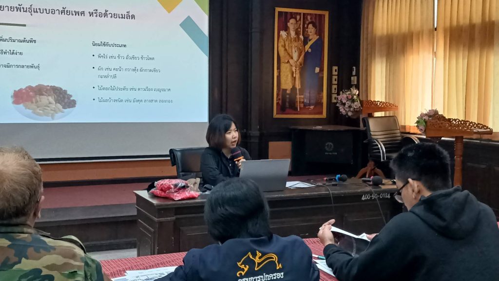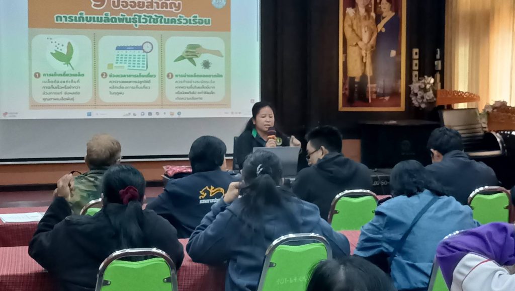 นางสาวปานทิพย์ วงษ์แก้ว เกษตรอำเภอนครไทย มอบหมายให้เจ้าหน้าที่สำนักงานเกษตรอำเภอนครไทย ร่วมเป็นวิทยากรฝึกอบรมโครงการอบรมอาชีพขยายพันธุ์พืช ประจำปีงบประมาณ พ.ศ.2568 ถ่ายทอดองค์ความรู้เทคนิคในการขยายพันธุ์พืชแบบอาศัยเพศและไม่อาศัยเพศ เทคนิคการเก็บเมล็ดพันธุ์และการปลูกผักตามฤดูกาล และฝึกปฏิบัติการขยายพันธุ์การติดตามะม่วง การเสียบยอดมะนาว จัดโดยสำนักปลัดเทศบาลงานพัฒนาชุมชน ณ ห้องประชุมอาคารศูนย์เทคโนโลยีฯ ชั้น 2 เทศบาลตำบลนครไทย จังหวัดพิษณุโลก
