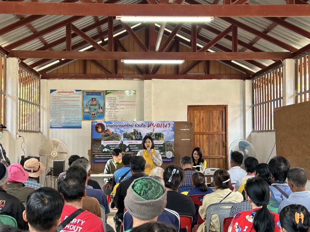 นางสาวปานทิพย์ วงษ์แก้ว เกษตรอำเภอนครไทย พร้อมด้วยเจ้าหน้าที่สำนักงานเกษตรอำเภอนครไทย ลงพื้นที่ประชาสัมพันธ์สร้างการรับรู้มาตรการดำเนินงานภายใต้การรับมือสถานการณ์ไฟป่า หมอกควัน และฝุ่นละออง ปี 2568 ของกรมส่งเสริมการเกษตร พร้อมแจ้งมาตรการการดำเนินงานของกรมส่งเสริมการเกษตร 5 มาตรการ โทษจากการเผาในพื้นที่การเกษตร และลงตรวจสอบจุด Hot Spot ที่เกิดเมื่อวันที่ 5 มกราคม 2568 สอบถามสาเหตุการเผา และแนะนำการจัดการเศษวัสดุทางการเกษตรโดยการไถกลบทดแทนการเผา ณ อาคารอเนกประสงค์ หมู่ที่ 13 ตำบลบ่อโพธิ์ อำเภอนครไทย จังหวัดพิษณุโลก