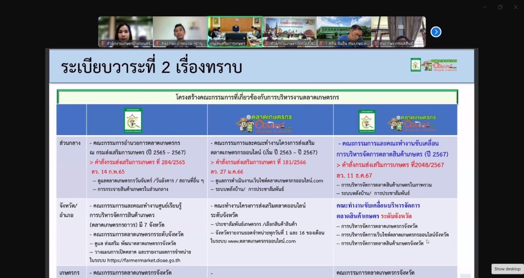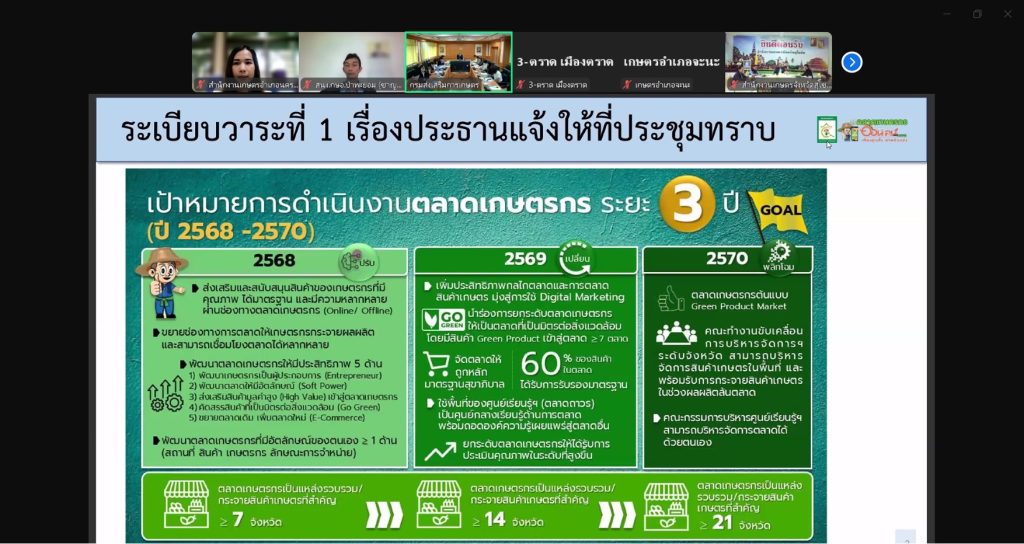 นางสาวปานทิพย์ วงษ์แก้ว เกษตรอำเภอนครไทย มอบหมายให้นางสาวสุภาภรณ์ คลังตอง นักวิชาการส่งเสริมการเกษตรปฏิบัติการ ร่วมประชุมคณะกรรมการและคณะทำงานขับเคลื่อนการบริหารจัดการตลาดสินค้าเกษตรประจำปีงบประมาณ พ.ศ.2568 ผ่านระบบ Zoom Meeting เพื่อขับเคลื่อนงานส่งเสริมการเกษตรเชิงพื้นที่ ส่งเสริมการเกษตรแปลงใหญ่ วิสาหกิจชุมชน Young Smart Farmer และกลุ่มผู้ผลิตสินค้าเกษตรให้มีการบริหารจัดการร่วมกัน เชื่อมโยงสู่ตลาดที่หลากหลาย ทั้งในระบบออฟไลน์และออนไลน์ ณ สำนักงานเกษตรอำเภอนครไทย จังหวัดพิษณุโลก