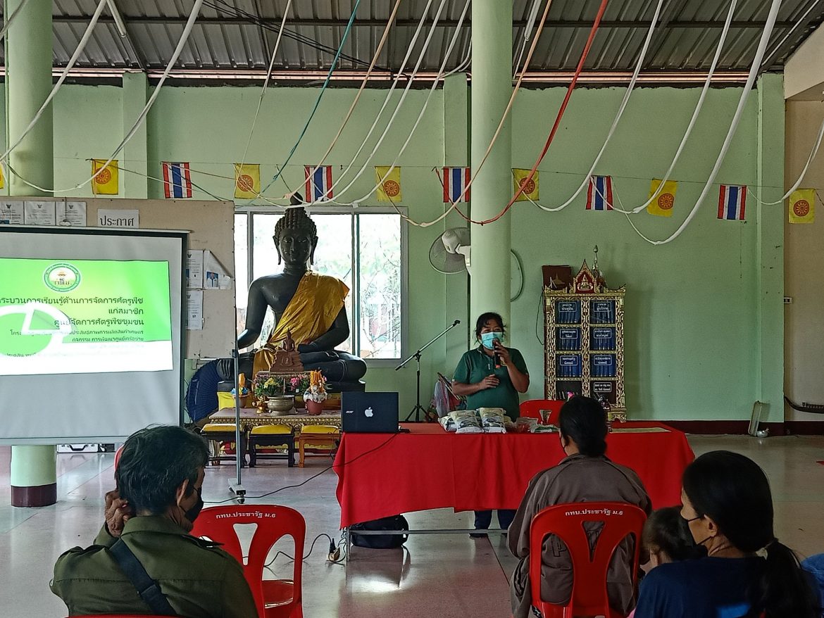 วันที่ 8 มิถุนายน 2565 นางสาวปานทิพย์ วงษ์แก้ว นักวิชาการส่งเสริมการเกษตรชำนาญการ รักษาราชการแทนเกษตรอำเภอนครไทย มอบหมายให้นางสาวสุนีย์ นาคานุกูล นักวิชาการส่งเสริมการเกษตรชำนาญการ พร้อมด้วยเจ้าหน้าที่สำนักงานเกษตรอำเภอนครไทย จัดกระบวนการเรียนรู้เพื่อพัฒนาและยกระดับคุณภาพศูนย์จัดการพืชชุมชน ให้แก่สมาชิกศูนย์จัดการศัตรูพืชชุมชน เป้าหมายจำนวน 15 ราย เพื่อถ่ายทอดเทคโนโลยีแก่เกษตรกรเป้าหมาย ณ ศาลาวัดประดู่สิน หมู่ที่ 6 ตำบลบ้านแยง อำเภอนครไทย จังหวัดพิษณุโลก