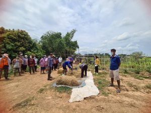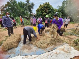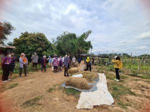 วันที่ 7 กรกฎาคม 2565 เวลา 13.00 น. นางสาวพีรดา จันทร์เกษร เกษตรอำเภอพรหมพิราม มอบหมายให้ นางสาวฐิตาภรณ์ เวยสาร วิชาการส่งเสริมการเกษตรปฏิบัติการ ร่วมกับผู้นำและเกษตรกร หมู่ 6 ตำบลวงฆ้อง ทำปุ๋ยหมักจากเศษวัสดุทางการเกษตรแบบไม่กลับกองด้วยสารเร่ง พด.1 เพื่อเป็นจุดสาธิตการผลิตและใช้ปุ๋ยอินทรีย์ / วัสดุอินทรีย์ในไร่นา และลดต้นทุนการผลิตใน ณ บ้านนายจำรัส ดีเนียม เกษตรกรที่เข้าร่วมโครงการทฤษฎีใหม่ หมู่ 6 ตำบลวงฆ้อง อำเภอพรหมพิราม จังหวัดพิษณุโลก