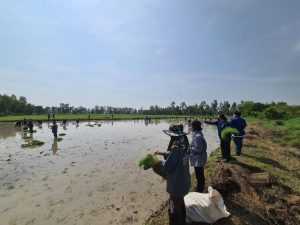 นางสาวพีรดา จันทร์เกษร เกษตรอำเภอพรหมพิราม พร้อมด้วย เจ้าหน้าที่สำนักงานเกษตรอำเภอพรหมพิราม ร่วมกับ ศูนย์เรียนรู้การเพิ่มประสิทธิภาพสินค้าเกษตร (ศพก.หลัก) เกษตรกรแปลงต้นแบบโครงการ 1 ตำบล 1 กลุ่มทฤษฎีใหม่ ทีมงานกำนันผู้ใหญ่บ้าน ตำบลดงประคำ ผู้อำนวย คณะครูอาจารย์ นักเรียนยุวเกษตรกร โรงเรียนวัดสมอสุวรรณาราม และผู้ปกครองนักเรียน ร่วมกิจกรรม การปลูกข้าว เพื่อส่งเสริมความรู้และสร้างจิตสำนึกรักอาชีพเกษตร สร้างแหล่งอาหารกลางวัน ตามโครงการส่งเสริมยุวเกษตรกรในโรงเรียน โดยมีผู้เข้าร่วมกิจกรรม จำนวน 50 คน ณ แปลงนา หมู่ 1 ตำบลดงประคำ อำเภอพรหมพิราม จังหวัดพิษณุโลก