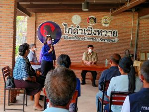 วัน พุธ ที่ 3 สิงหาคม 2565 เวลา 13.00 น. นางสาวพีรดา จันทร์เกษร เกษตรอำเภอพรหมพิราม นางสาวประนอม แก้วกำพล ปลัดอำเภอหัวหน้างานบริหารงานปกครองอำเภอพรหมพิราม หัวหน้าส่วนราชการส่วนท้องที่และท้องถิ่น สมาชิกกลุ่มวิสาหกิจชุมชนไก่ดำสมุนไพรบ้านเซิงหวาย และเจ้าหน้าที่ส่งเสริมการเกษตรอำเภอพรหมพิราม ให้การต้อนรับ นายขจร เราประเสริฐ ผู้ตรวจราชการกระทรวงเกษตรและสหกรณ์ เขต 17 ลงพื้นที่ศึกษาดูงานโครงการผลิตไก่ดำเซิงหวายแบบครบวงจร เพื่อติดตามความก้าวหน้าผลการดำเนินงานตามประเด็นการตรวจราชการและขับเคลื่อนแบบบูรณาการในระดับพื้นที่ ณ กลุ่มวิสาหกิจชุมชนไก่ดำสมุนไพรบ้านเซิงหวาย หมู่ที่ 3 ตำบลตลุกเทียม อำเภอพรหมพิราม จังหวัดพิษณุโลก