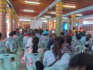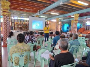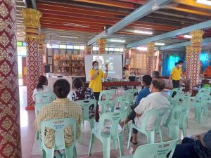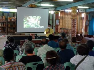 นางสาวพีรดา จันทร์เกษร เกษตรอำเภอพรหมพิราม มอบหมายให้ เจ้าหน้าที่ส่งเสริมการเกษตรสำนักงานเกษตรอำเภอพรหมพิราม อบรมให้ความรู้เกษตรกรที่ได้รับผลกระทบจากอุทกภัย เพื่อการฟื้นฟูหลังน้ำลด เกษตรกรที่ประสบภัยด้านข้าว มันสำปะหลัง ข้าวโพดเลี้ยงสัตว์ และไม้ผล โดยมีวิทยากรมาให้ความรู้ดังนี้1.นายประพันธ์ ยอดเกตุ เจ้าหน้าที่สถานีพัฒนาที่ดินพิษณุโลกเป็นวิทยากร ให้ความรู้เรื่อง การเตรียมดิน การปรับปรุงบำรุงดิน การฟื้นฟูดินหลังน้ำท่วม และการใช้สารเร่งพด.1และพด.3 2.เจ้าหน้าที่จากสำนักงานเกษตรจังหวัดพิษณุโลก กลุ่มอารักขาพืช มาให้ความรู้เกี่ยวกับ ท่อนพันธุ์มันสำปะหลัง และโรคใบด่างมันสำำปะหลัง 3.นางสาวประภาทิพย์ พันธะชาติ นักวิชาการส่งเสริมการเกษตรชำนาญการ วิทยากรจากศูนย์ส่งเสริมเทคโนโลยีการเกษตรด้านอารักขาพืชพิษณุโลก มาให้ความรู้เรื่อง การป้องกันกำจัดศัตรูพืชหลังน้ำลด และสาธิตการผลิตสารชีวภัณฑ์ ไตรโครเดอร์มาและเมตตาไรเซียม อบรมให้กับเกษตรที่ประสบภัยตำบลทับยายเชียง ณ ศาลาวัดหนองมะคัง ตำบลทับยายเชียง อำเภอพรหมพิราม มีเกษตรกรเข้าร่วมอบรม 140 ราย