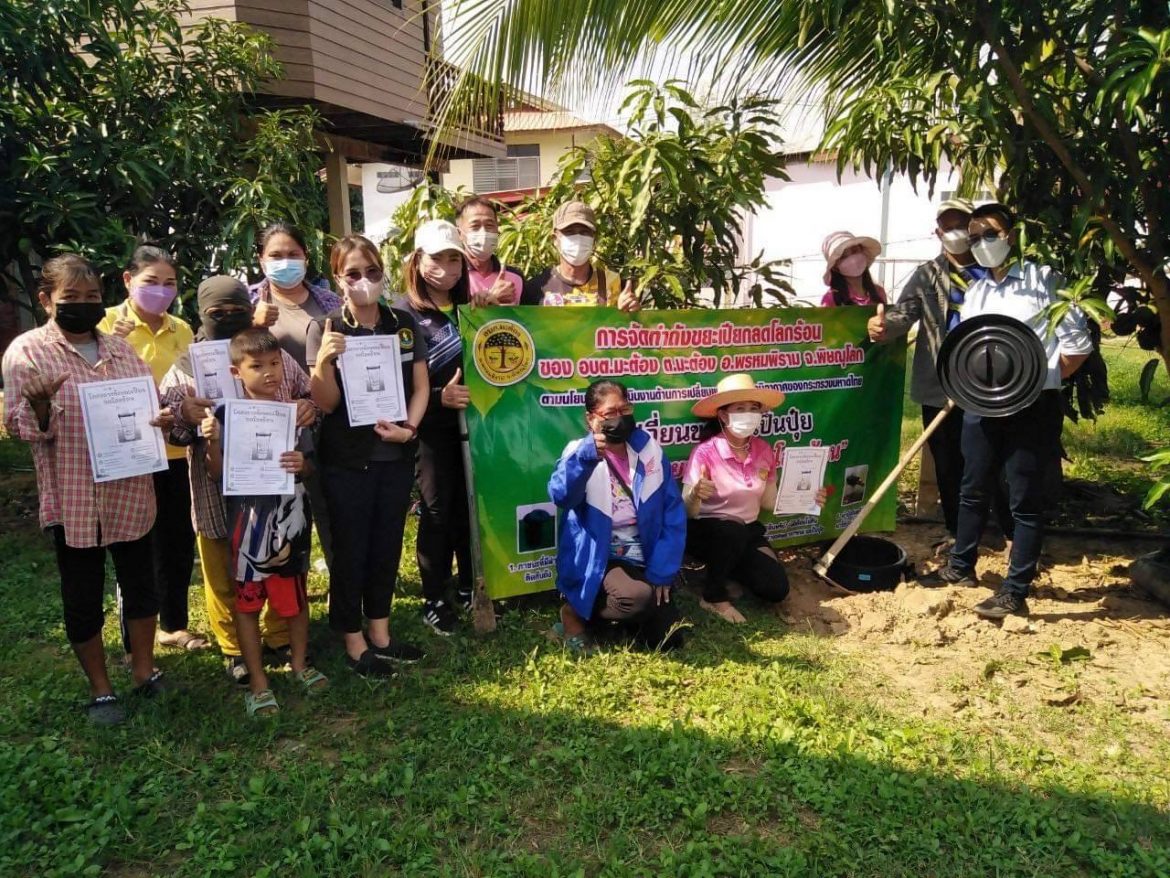 นางสาวพีรดา จันทร์เกษร เกษตรอำเภอพรหมพิราม มอบหมายให้ นางฐิตาภรณ์ เวยสาร นักวิชาการส่งเสริมการเกษตรปฏิบัติการ เข้าร่วมประชาสัมพันธ์เชิญชวนประชาชนที่พักอาศัย จัดทำถังขยะเปียก ลดโลกร้อน เพื่อลดปริมาณขยะตั้งแต่ต้นทาง ลดค่าใช้จ่ายในการกำจัดขยะ ลดโลกร้อน ณ พื้นที่ตำบลมะต้อง อำเภอพรหมพิราม จังหวัดพิษณุโลก