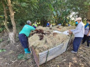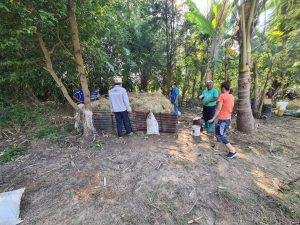 นางสาวพีรดา จันทร์เกษร เกษตรอำเภอพรหมพิราม มอบหมายให้ นางสาวฐิตาภรณ์ เวยสาร นักวิชาการส่งเสริมการเกษตรปฎิบัติการ ลงพื้นที่แนะนำการทำปุ๋ยหมักแบบไม่กลับกอง และน้ำหมักชีวภาพ เพื่อเป็นการลดต้นทุนในการทำการเกษตร โดยมีผู้นำหมู่บ้าน อบต. และเกษตรกรในพื้นที่ ร่วมทำกิจกรรมในครั้งนี้ ณ แปลงของนายดำรงพล สนมฉ่ำ อาสาสมัครเกษตรหมู่ 2 ตำบลมะต้อง อำเภอพรหมพิราม จังหวัดพิษณุโลก