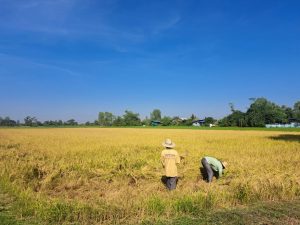 วันที่ 21 พฤศจิกายน 2566 นางเกยูร จารุรัตนพงศ์ เกษตรอำเภอพรหมพิราม มอบหมายให้นางคนึง สมบุญมี และนายธีรวัต กาวิละมูล นักวิชาการส่งเสริมการเกษตรปฏิบัติการ ร่วมกิจกรรม “ลงแขกเกี่ยวข้าว เอาแรงปลูกผัก” ณ วิสาหกิจชุมชนชีววิถีบ้านนาขุม ม.7-ม.8 ตำบลท่าช้าง อำเภอพรหมพิราม จังหวัดพิษณุโลก
