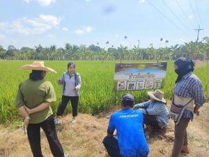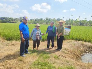 วันที่ 24 พฤศจิกายน 2566 นางเกยูร จารุรัตนพงศ์ เกษตรอำเภอพรหมพิราม มอบหมายให้นางคนึง สมบุญมี นายธีรวัต กาวิละมูล และนางสาวอภิญญา สลีวงศ์ นักวิชาการส่งเสริมการเกษตรปฏิบัติการ ลงพื้นที่ติดตาม สอบถาม และประเมินความเสียหายพื้นที่ปลูกข้าวในพื้นที่หมู่ 2 ตำบลท่าช้าง อำเภอพรหมพิราม ที่เกษตรกรแจ้งว่าได้รับผลกระทบจากละอองของสารเคมีที่ฉีดพ่นในแปลงข้างเคียง ผลการพูดคุยเกษตรกรทั้งสองฝ่ายสามารถตกลงชดเชยค่าเสียหายต่อกันได้