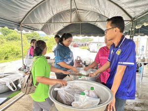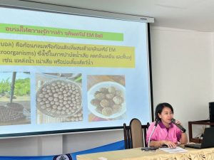 วันที่ 26 สิงหาคม 2568 นางเกยูร จารุรัตนพงศ์ เกษตรอำเภอพรหมพิราม มอบหมายให้ นางสาวณฐมน อิ่มเพ็ง นักวิชาการส่งเสริมการเกษตรชำนาญการ เข้า อบรม เกษตรกรในโครงการส่งเสริมเศรษฐกิจพอเพียงประจำปีงบประมาณ 2568 เพื่อให้เกษตรกรและประชาชน ได้มีความรู้ความเข้าใจเรื่อง เศรษฐกิจพอเพียงและฝึกปฏิบัติการทำ EM Ball เพื่อใช้ในการบำบัดน้ำเสีย ย่อยสลาย ตะกอนปรับสภาพ น้ำค่า pH ของน้ำให้เป็นกลางสามารถใช้เป็นอาหารสัตว์น้ำได้และช่วยย่อยสลายเป็นอินทรีย์วัตถุในดิน ทำให้ดินร่วนซุยและมีธาตุอาหาร ที่จำเป็นต่อพืช ช่วยดับกลิ่นเหม็นในห้องน้ำและ ไม่เป็นอันตรายต่อสิ่งมีชีวิต โดยมี นายนุชา สืบบุญ ปลัดองค์การบริหารส่วนตำบลพรหมพิราม เปิดงาน และมีตัวแทนหมู่บ้าน ทุกหมู่บ้าน ผู้นำอกม. เข้าร่วมอบรม จำนวน 30 ราย ณ ศูนย์พัฒนาคุณภาพชีวิต และส่งเสริม อาชีพผู้สูงอายุ(อาคารผู้สูงอายุ) องค์การบริหารส่วนตำบลพรหมพิราม อำเภอพรหมพิราม จังหวัดพิษณุโลก