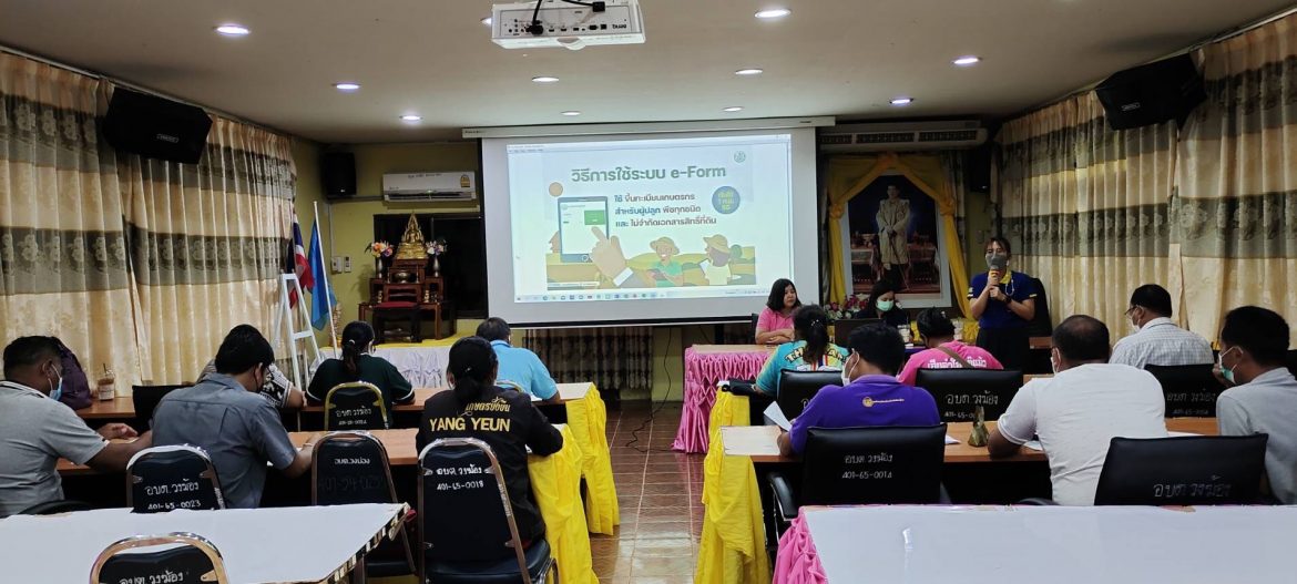 จัดอบรมการขึ้นทะเบียนและปรับปรุงทะเบียนเกษตรกรออนไลน์ (e-form) ให้กับอาสาสมัครเกษตรหมู่บ้าน (อกม.) ตำบลมะต้อง และตำบลหนองแขม