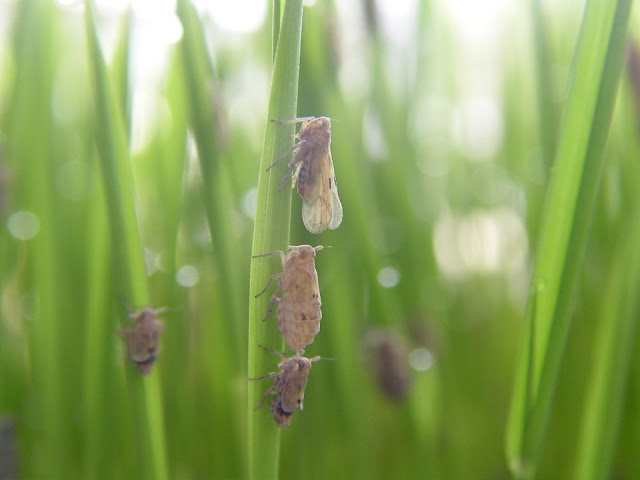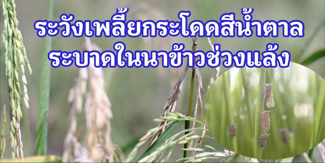 เพลี้ยกระโดดสีน้ำตาล (Brown Plant hopper) โดยรูปร่างลักษณะตัวเต็มวัยจะมีลำตัวสีน้ำตาลถึงสีน้ำตาลปนดำ มีชนิดปีกยาว (บินได้) และชนิดปีกสั้น (บินไม่ได้) สามารถเคลื่อนย้ายและอพยพไปในระยะทางใกล้และไกล โดยอาศัยกระแสลม ตัวเต็มวัยเพศเมียจะวางไข่เป็นกลุ่ม ส่วนใหญ่วางไข่ที่กาบใบข้าว บริเวณที่วางไข่จะมีรอยช้ำเป็นสีน้ำตาล ไข่มีลักษณะรูปกระสวยโค้งคล้ายกล้วยหอม มีสีขาวขุ่น ระยะตัวอ่อน 16-17 วัน ตัวเต็มวัยเพศเมียชนิดปีกยาวมีขนาด 4.0-4.5 มิลลิเมตร วางไข่ประมาณ 100 ฟอง เพศผู้มีขนาด 3.5-4.0 มิลลิเมตร เพศเมียชนิดปีกสั้นวางไข่ประมาณ 300 ฟอง ตัวเต็มวัยมีชีวิตประมาณ 2 สัปดาห์ ในหนึ่งฤดูปลูกข้าว เพลี้ยกระโดดสีน้ำตาลสามารถเพิ่มปริมาณได้ 2-3 รุ่น