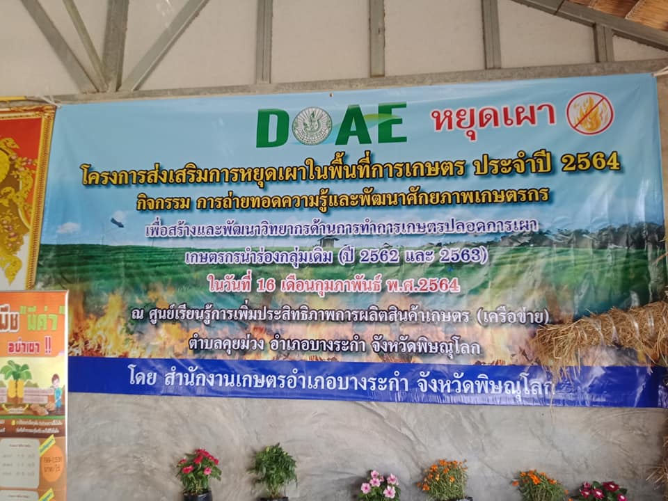 วันที่ 16 กุมภาพันธ์2564 นายเชน จีนหมวกดำ เกษตรจังหวัดพิษณุโลก มอบหมายให้คณะนักวิชาการส่งเสริมกานเกษตรขอฃกลุ่มอารักขาพืชร่วมกับสำนักงานเกษตรอำเภอบางระกำ จัดงานตามโครงการหยุดเผาในพื้นที่การเกษตร ปี 2564 ณ ศูนย์ ศพก. (เครือข่าย) ตำบลคุยม่วง อำเภอบางระกำ จังหวัดพิษณุโลก ภายในงานมีการให้ความรู้ควบคู่กับการสาธิตในแปลงเกษตร