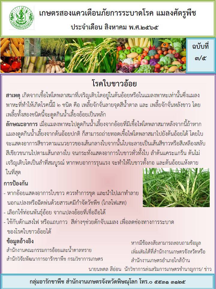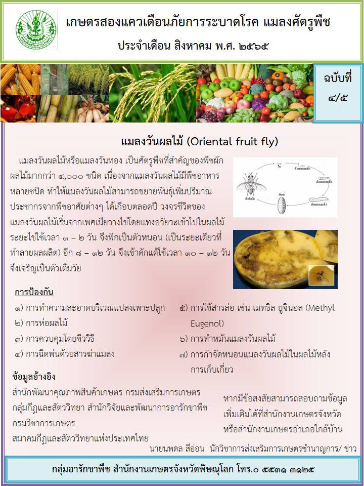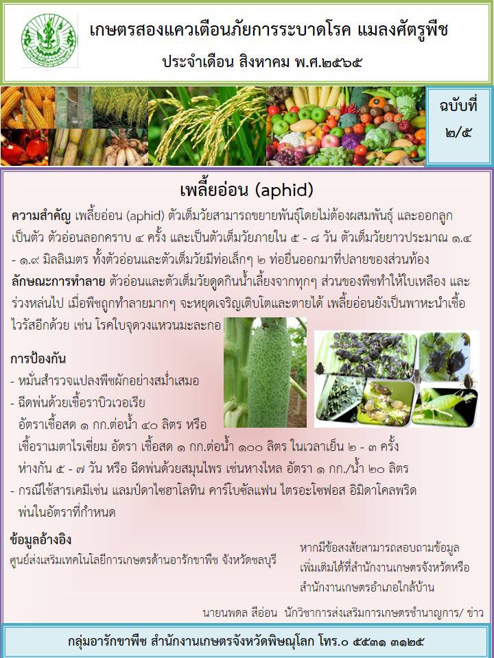 ประชาสัมพันธ์ กลุ่มอารักขาพืช สำนักงานเกษตรจังหวัดพิษณุโลก ประชาสัมพันธ์เตือนภัยการระบาดศัตรูพืชประจำเดือนสิงหาคม 2565เพื่อเฝ้าระวังป้องกันการระบาดร่วมไปถึงแนะนำวิธีการป้องกันกำจัด 26 กรกฎาคม 20222 สิงหาคม 2022 จีรพงษ์