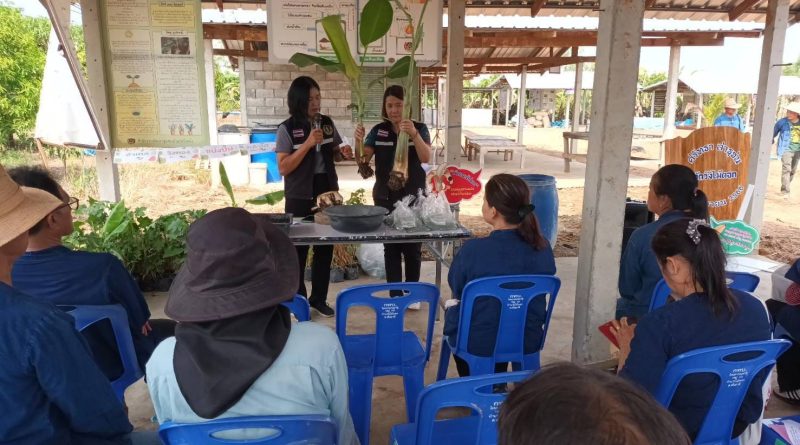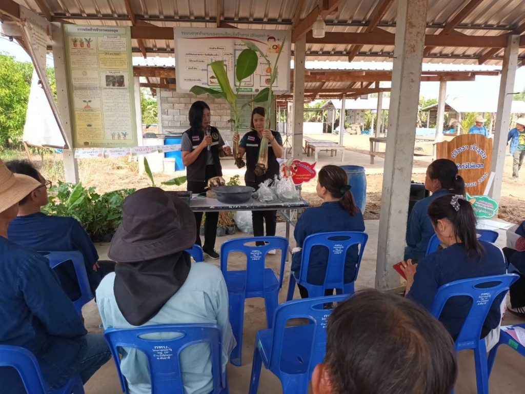 นายมนัส เสียงก้อง เกษตรจังหวัดพิษณุโลก มอบหมายให้ นางทิพวรรณ แป้นเมือง ตำแหน่งนักวิชาการส่งเสริมการเกษตรปฏิบัติการ และนางรสจรินทร์ หลวงโปธา ตำแหน่งนักวิชาการส่งเสริมการเกษตรชำนาญการ เป็นวิทยากรบรรยายหัวข้อ “การปลูก บำรุง รักษา และขยายพันธุ์ กล้วยน้ำว้ามะลิอ่อง” ในกิจกรรมสนับสนุนการขับเคลื่อนกิจกรรมศูนย์เรียนรู้ การพัฒนาคุณภาพชีวิต ตามหลักทฤษฎีใหม่ประยุกต์สู่โคกหนองนาโมเดล ณพื้นที่เรียนรู้ชุมชนต้นแบบการพัฒนาคุณภาพชีวิตระดับตำบล แปลงนางบังอร เมธี หมู่ 10 ตำบลพันชาลี อำเภอวังทอง จังหวัดพิษณุโลก