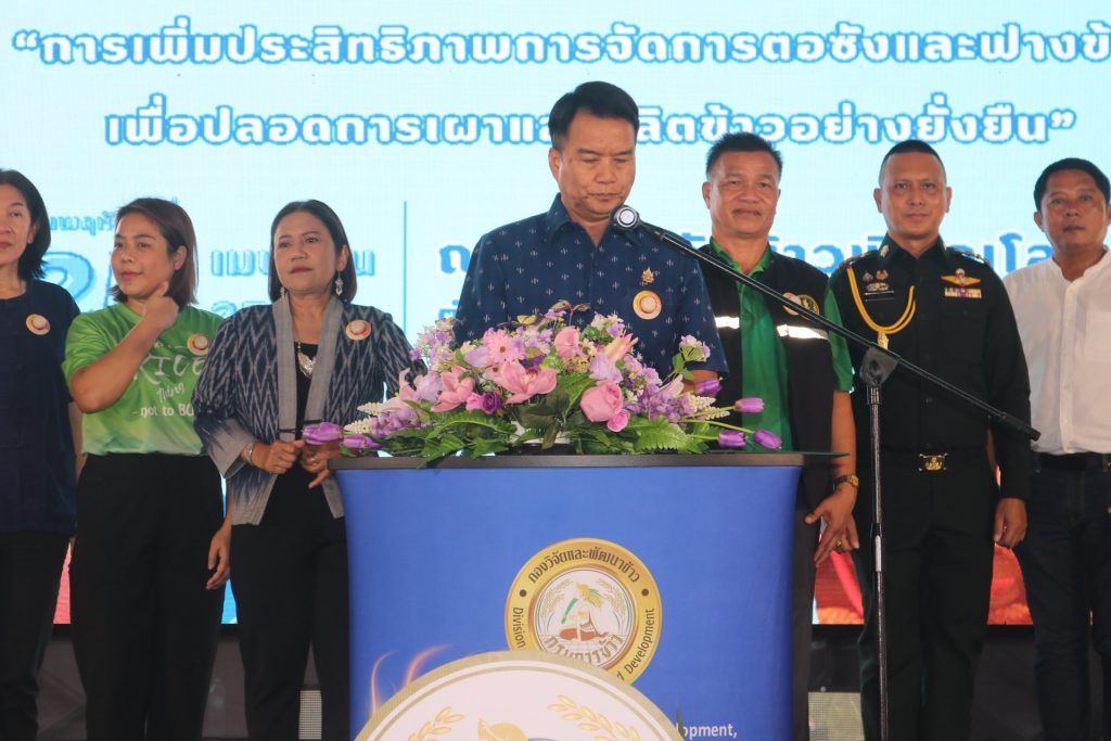 พิธีเปิด งานวันถ่ายทอดเทคโนโลยี (Field day) เรื่อง “การเพิ่มประสิทธิภาพการจัดการตอซังและฟางข้าวด้วยนวัตกรรมเทคโนโลยีจุลินทรีย์เพื่อปลอดการเผาและผลิตข้าวอย่างยั่งยืน”