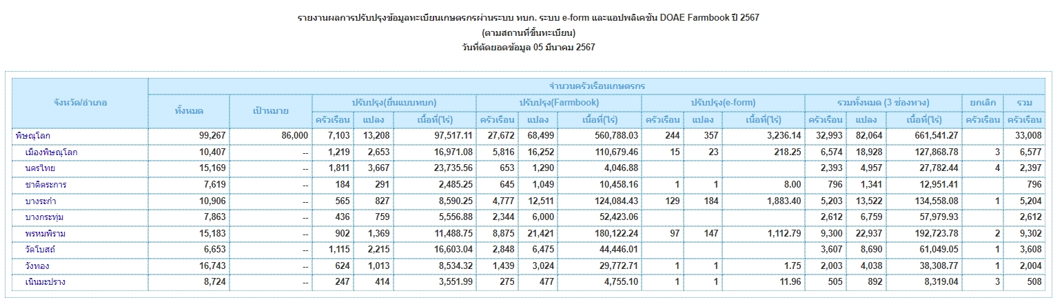 - สรุปการขึ้นทะเบียนและการปรับปรุงทะเบียนเกษตรกรจังหวัดพิษณุโลก (1ต.ค. 66 – 31 มี.ค. 67)